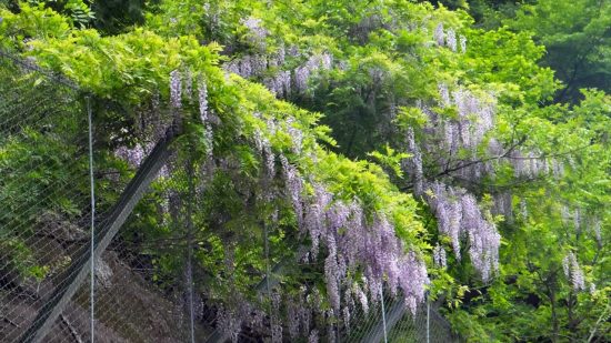 桐生駅からタクシーに分乗して駒形登山口で下車。歩きやすい登山道を第一石門、第二石門とすぎ、肩の広場・雷神社に到着。そこから山頂までは急登。雲空のため周囲の山々の眺望は、いまいちでした。しかし、さすが「花の山」だけあって、イワカガミ、ヒイラギソウ、満開のオオフジ等多くの花を見ることが出来ました。