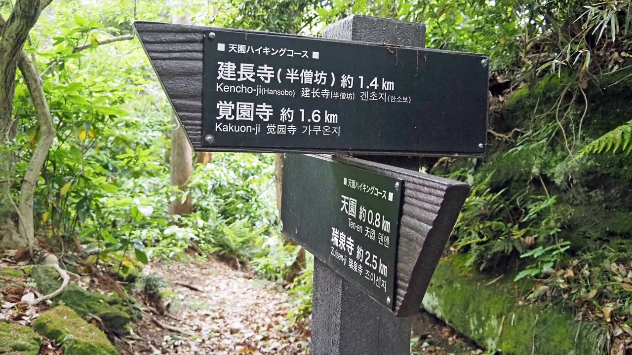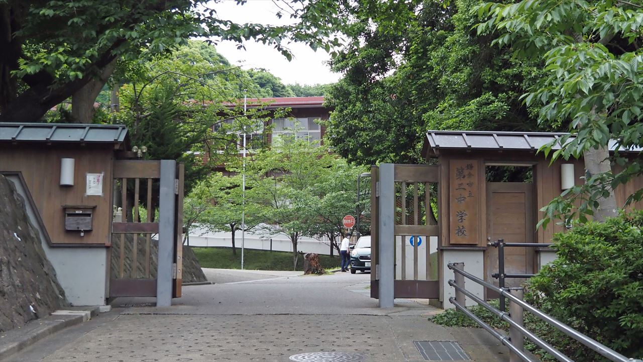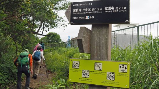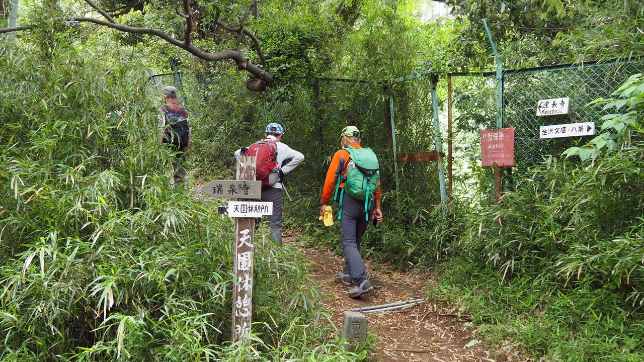 建長寺の裏にでる予定でしたが、通過するだけでも500円の拝観料を払うことになるので、手前の分岐からグリーンコースに変更。このコースは正式な登山道でなく鎌倉市立第二中学校に辿り着きます。中学校の校庭に女性教師が団体さんが下山するのが分かり校門を開けて迎えて下さいました。感謝です。