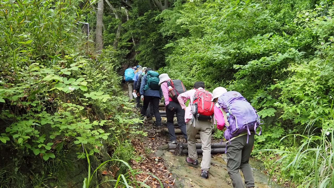 前日の雨で滑りやすく、時間がかかりましたが慎重に下山。緑深く爽やかな5月の自然を満喫できました。参加者の皆さんのご協力で、今回も安全な山行が出来ました。有難う御座いました。松木 千恵子