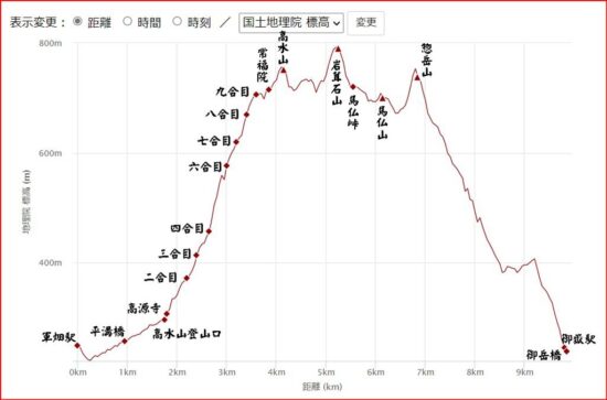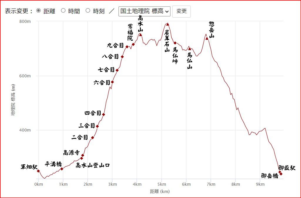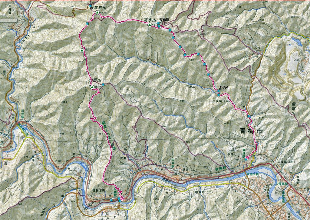 12:55→馬ぼとけ峠13:09→馬仏山13:18→惣岳山13:46→15:25御嶽駅