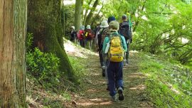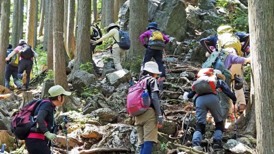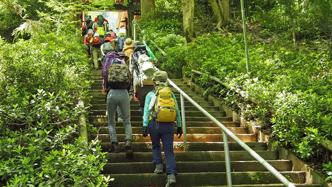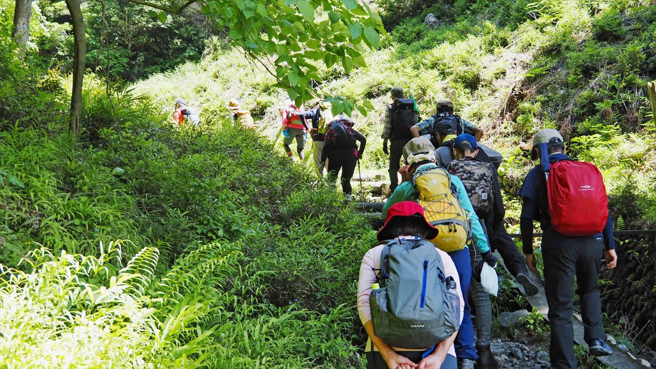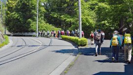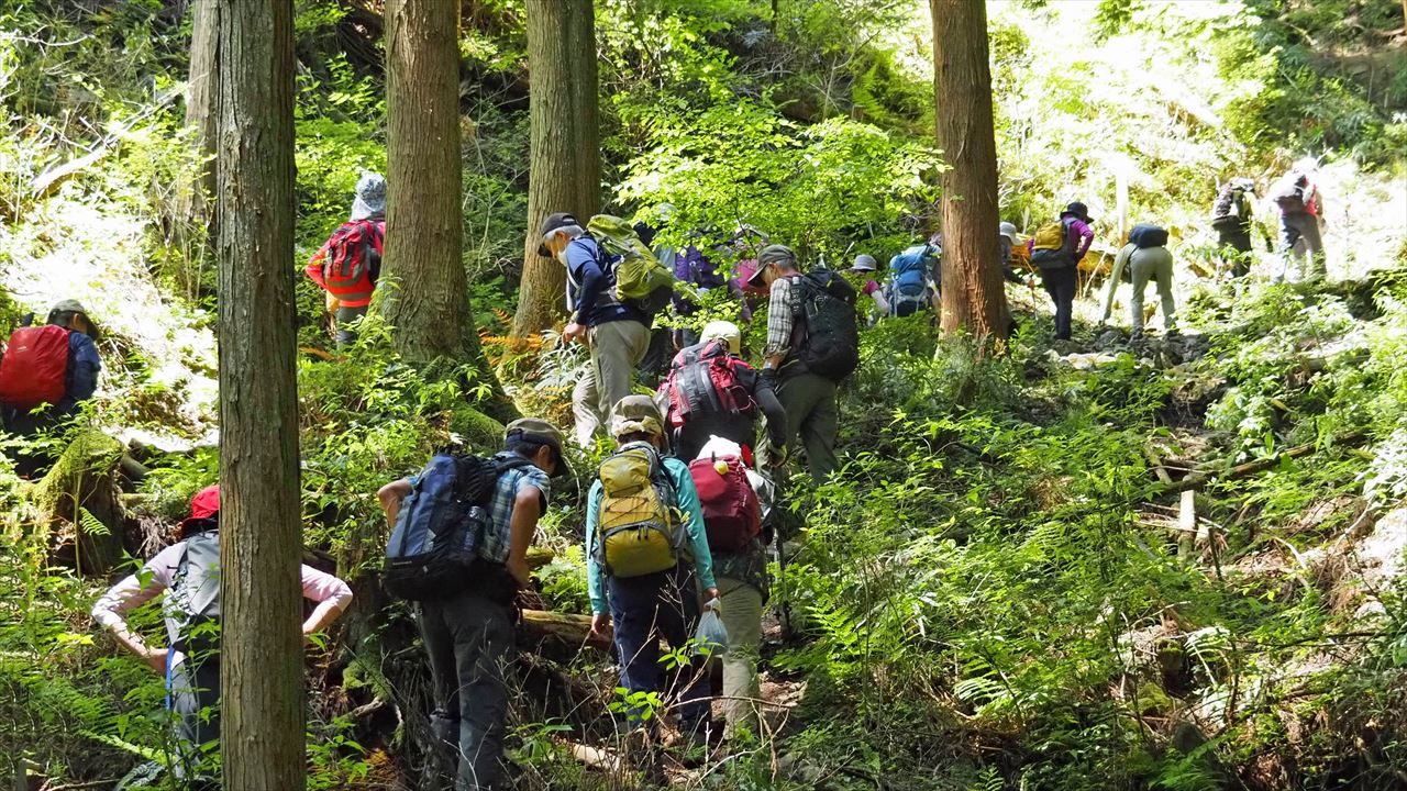 国立奥多摩美術館を右手に、登山路を進む。まるで、中央線の駅を東京に向かって歩いているようだ。