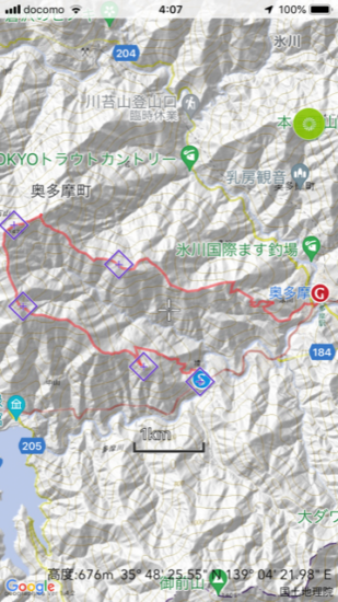 ▼コース 奥多摩駅バス停8:35発=境橋下車→取付点(8:50)→イソツネ山(10:15‐10:25)→