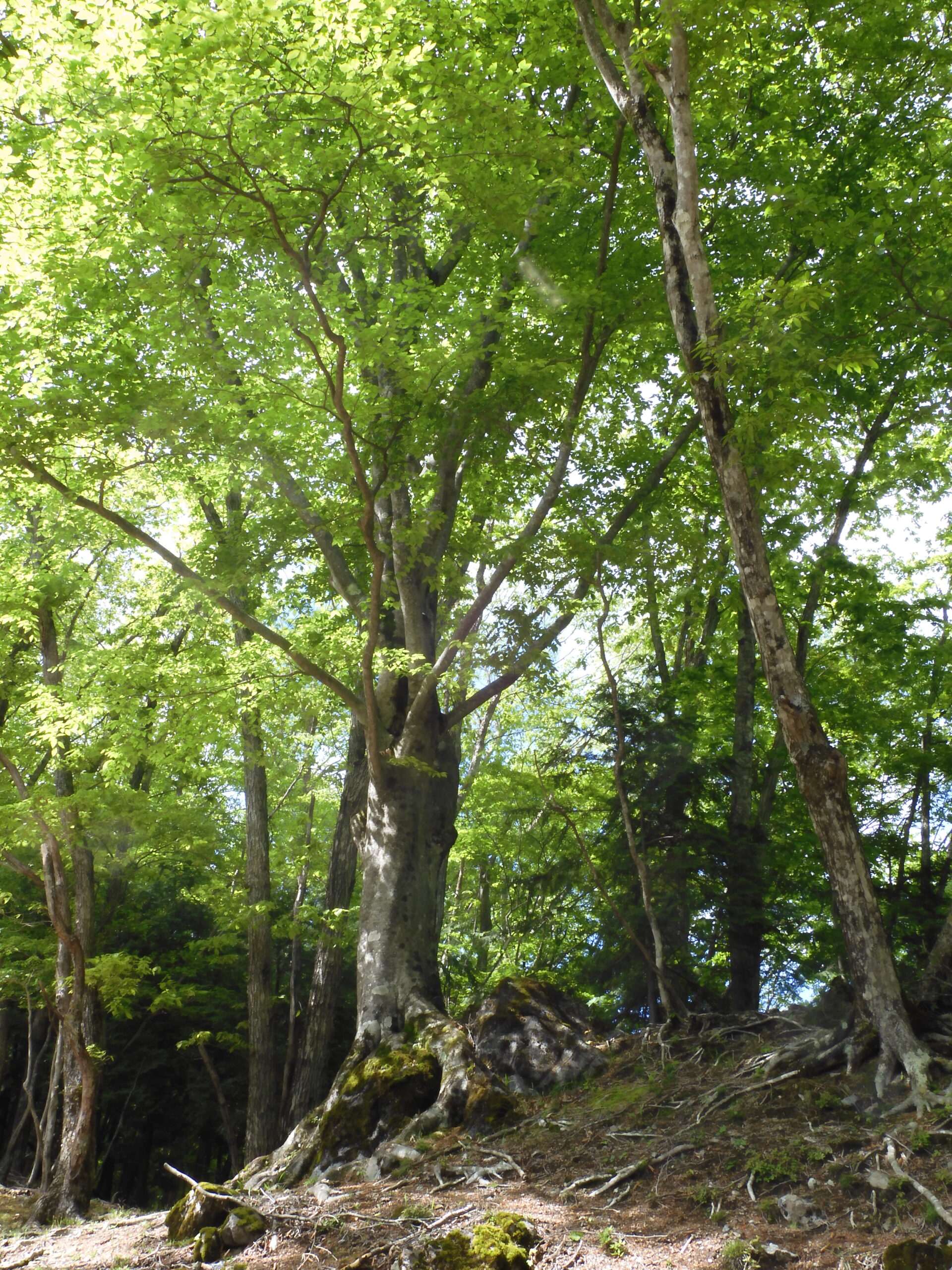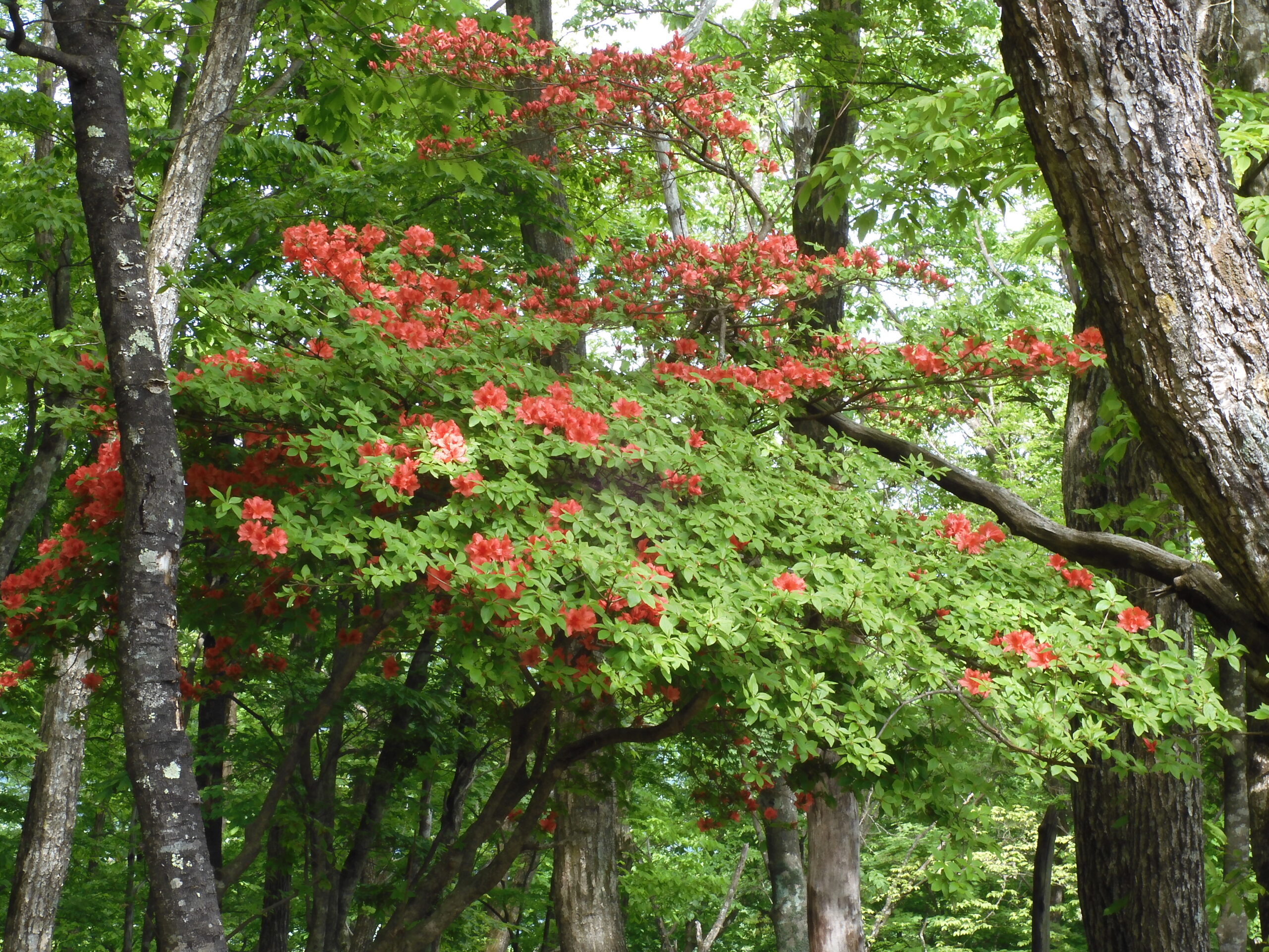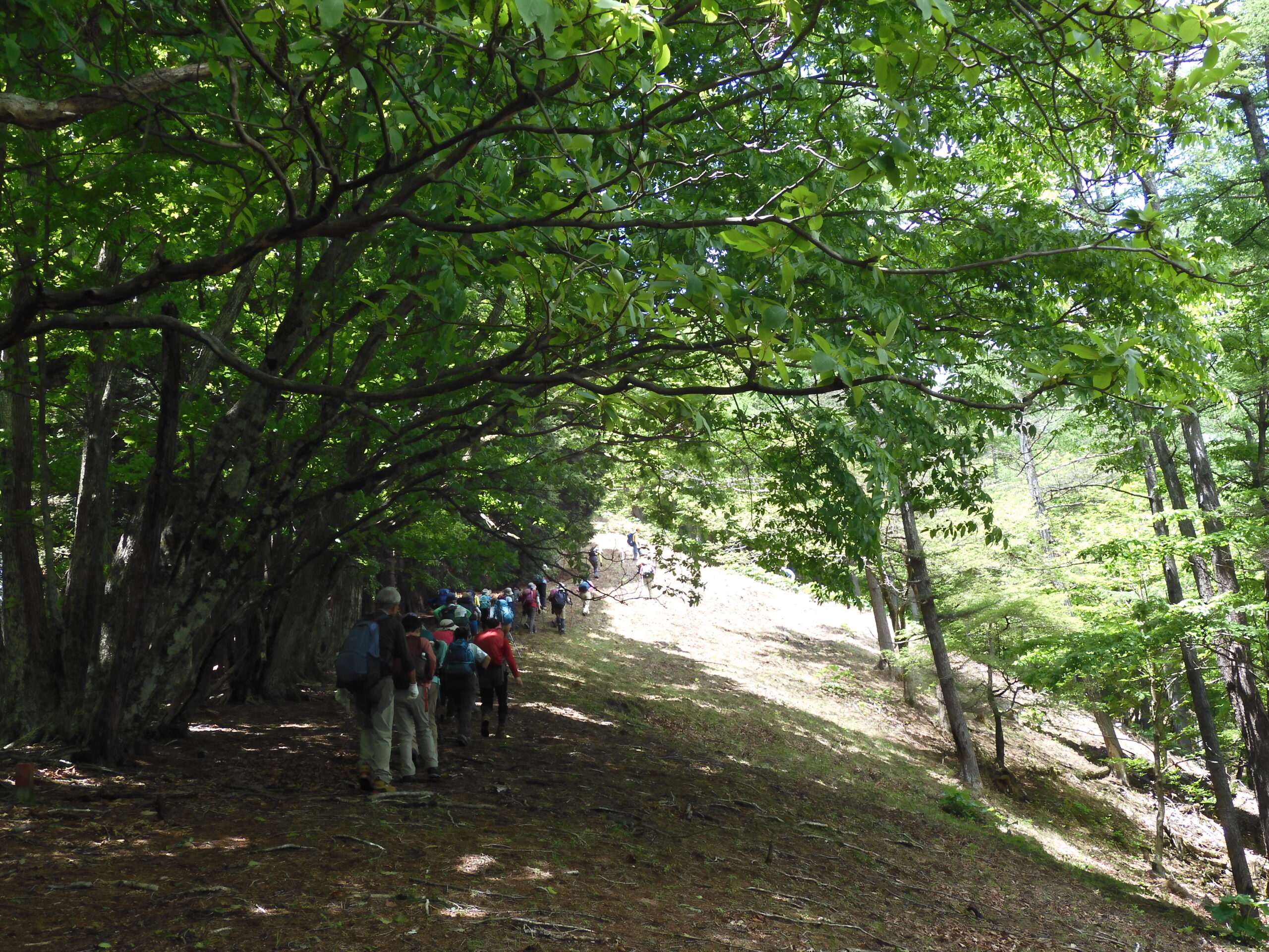 ▼コメント:21日は降雨予報のため22日に変更しました。イソツネ山、狩倉山、三ノ木戸山と寄り道しての長丁場をブナ林の美しい新緑とヤマツツジに助けられて皆様、頑張りました。