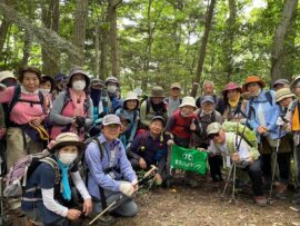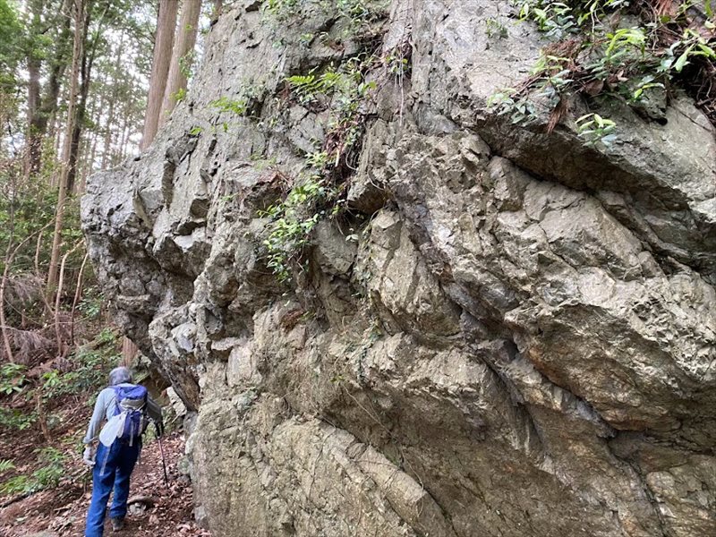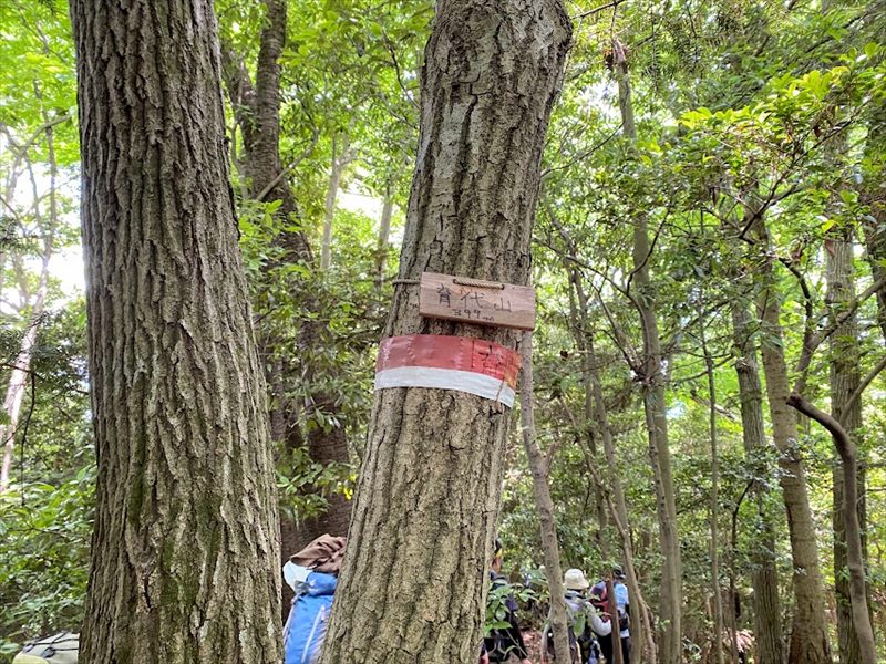 分岐林道の登山口から虎秀山への急坂を登り、尾根沿いのいくつかのピークを越えながら林道手前で昼食をとり、林道から育代尾根に入り、育代山、育代岩を経て下山しました。サブリーダー、協力者の皆様ありがとうございました。