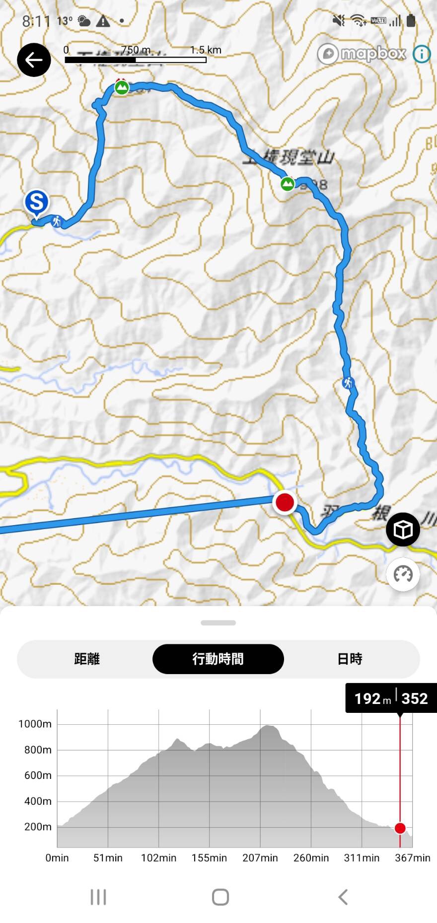 鋸山歩行軌跡 下権現堂山~上権現堂山歩行軌跡