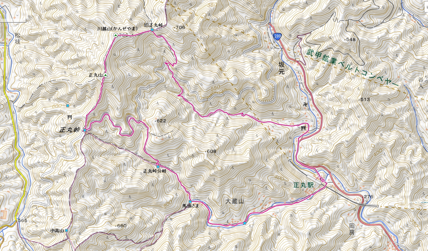 | 正丸峠からコース変更 | 後半、青空になる | 高架下を潜り左折、正丸駅 |