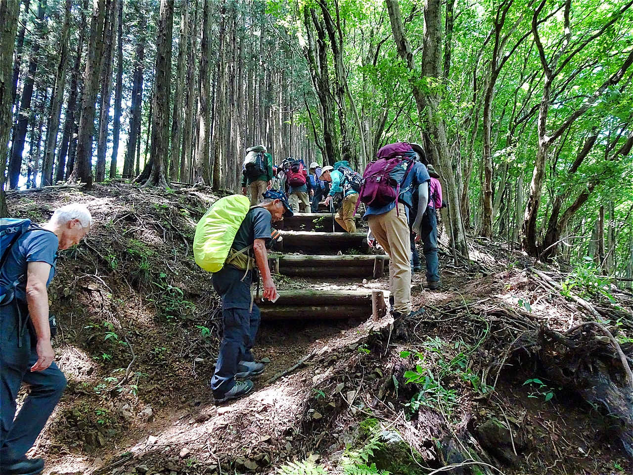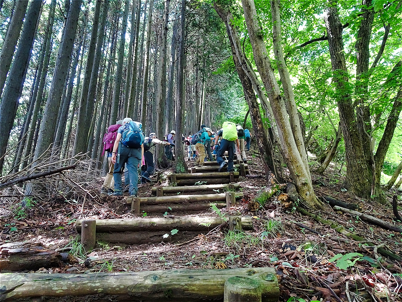 | 快晴の下、スタート | 旧正丸峠からの急登 | 急登階段 |