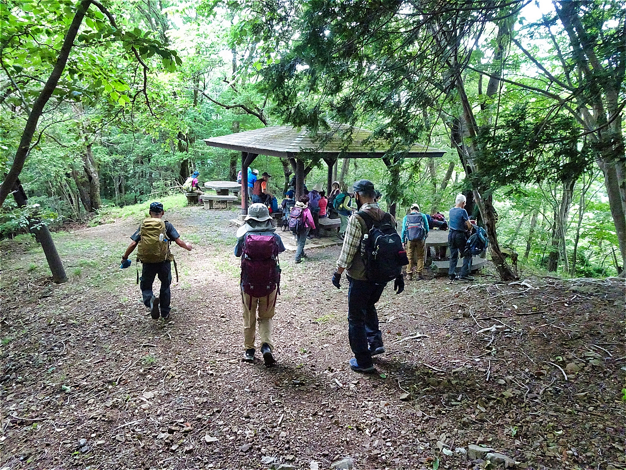 | 川越山山頂 | 集合写真 | 東屋で昼食 |