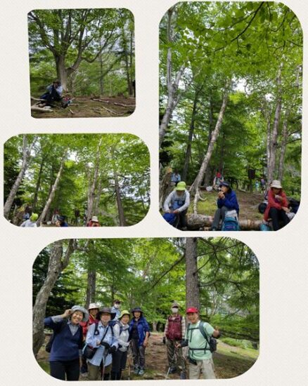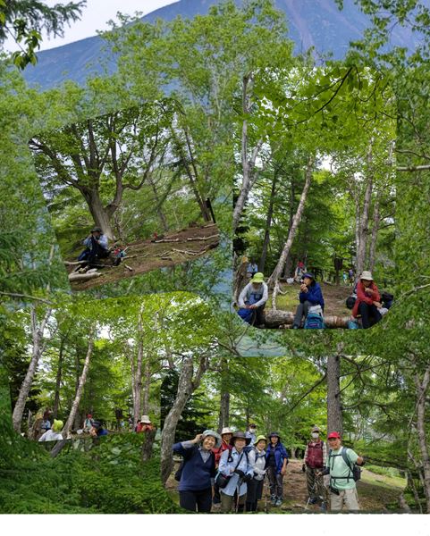 ダケカンバ等に囲まれて楽しいランチ。話も弾み、みんな笑顔です。