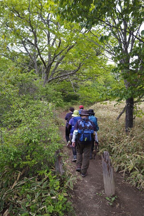 リーダーより、もしもの時は小田代原に下ると緩やかで近道と説明あり。