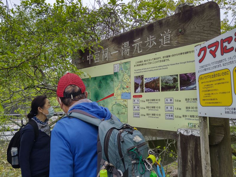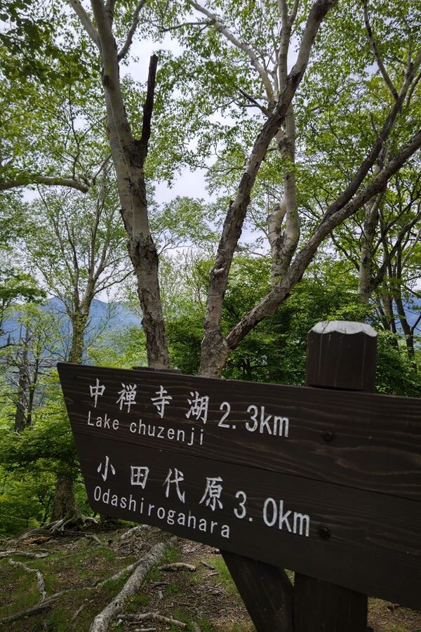 小田代原と中禅寺湖への分岐。ほっと一息。中禅寺湖方面に下る。