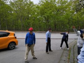 リーダー挨拶、ラジオ体操、自己紹介(お試しのKさんも加わる)