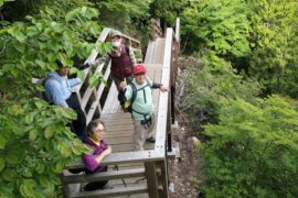 さあ、出発!! 竜頭の滝・滝上。竜頭の橋を渡り、高山を目指す。