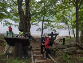 美しい砂浜が広がる熊窪に到着。中禅寺湖からの涼しい風が心地良い歩きでした。