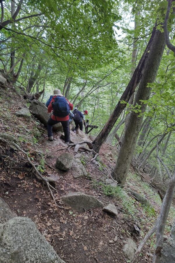 山頂からの下りは急で、峠の分岐まで鎖やロープがありましたが