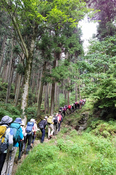 小泉リーダー挨拶 「例年より早い梅雨明けで、連日の猛暑の為、安全を優先して4⃣北川尾根