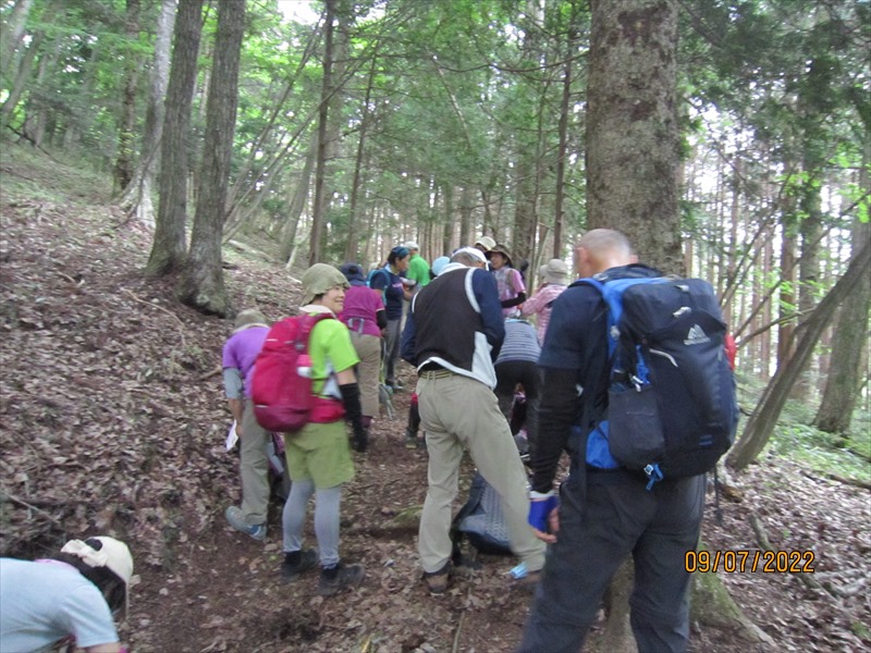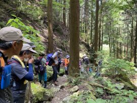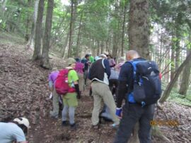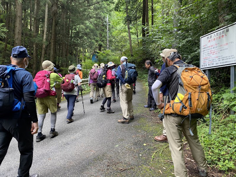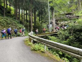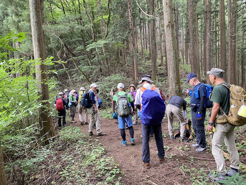 雨の心配もない天候になり、、数馬の集落から登山道に入り、最初はきつい急坂を登り、1時間程で数馬分岐に到着。ここからは、平坦な長い尾根道が続き、途中休憩をとりながら、浅間嶺手前のピークを登りきりました。浅間嶺休憩所で昼食後、見晴台で集合写真を撮り、その後、長い時坂古道コースを下り、予定時間より早めに、払沢の滝バス停に下山できました。リーダー、サブリーダー、協力者の皆さん、ご協力ありがとうございました。