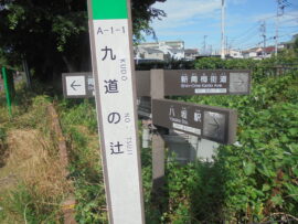 昔は9本の道、現在は7本の道 この地点から鎌倉へ18里 前橋へ18里中間点である。