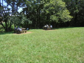 広場にて昼食 雑木林からの涼しい風に癒されて(眠気も)