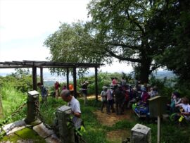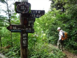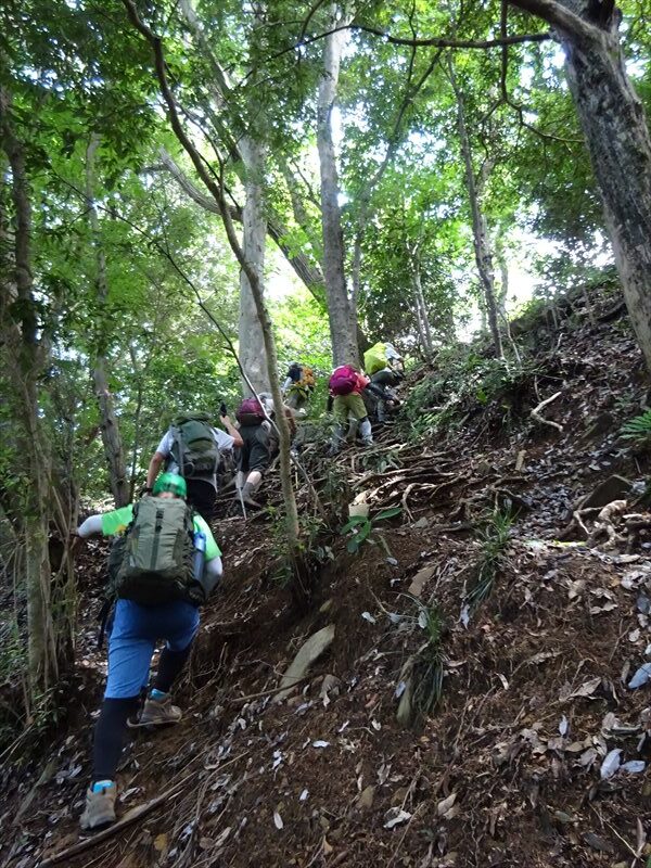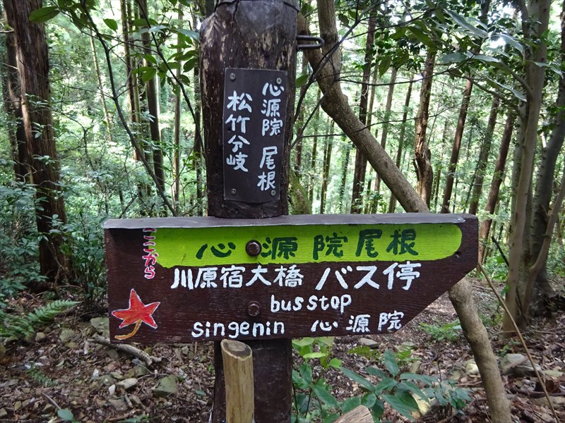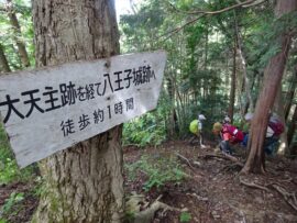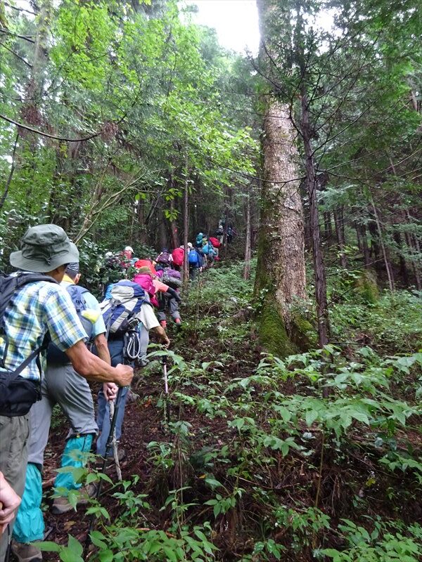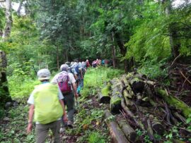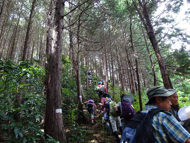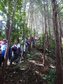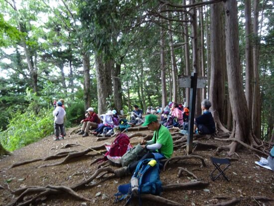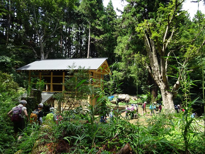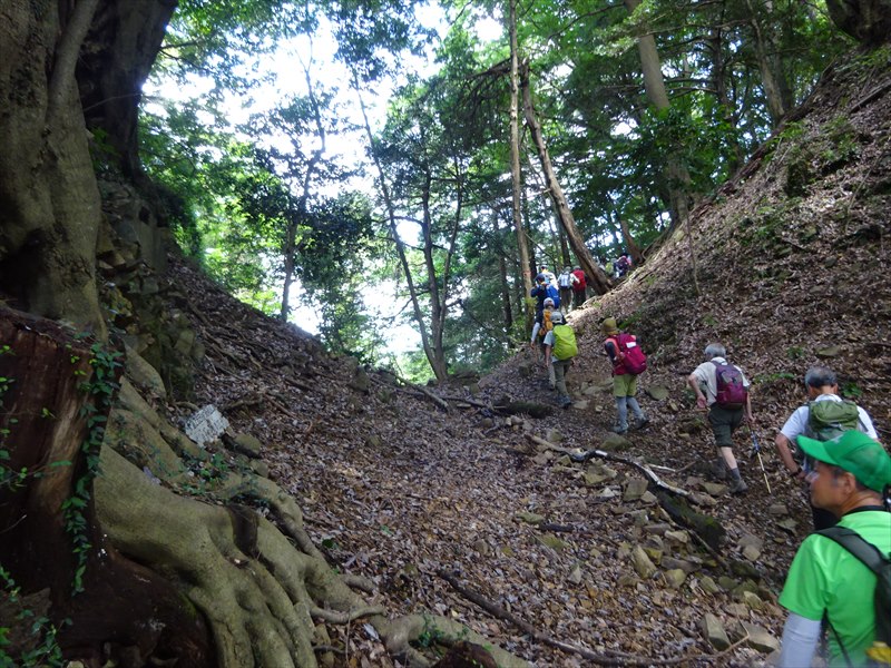 リーダーコメント:昨日の台風8号の雨上がり後で滑りやすくバリエーションコースのきつい急坂を何回か登り返し、目的の杉沢の頭山頂に着いた。ここから近い富士見台で昼食をとり八王子城跡を経て、棚門台後から心源院尾根に入り何回か休憩とりながら、秋葉神社を経て心源院に下山しここで解散する。