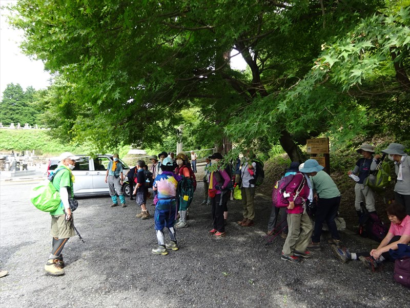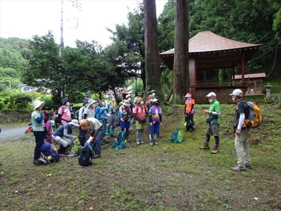 バス停近くの、松竹神社脇でリーダー挨拶、コース説明注意点等など