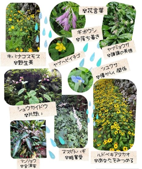 ヤブミョウガ、ケイトウ(✾おしゃれ、気取り屋)等、秋を感じます。