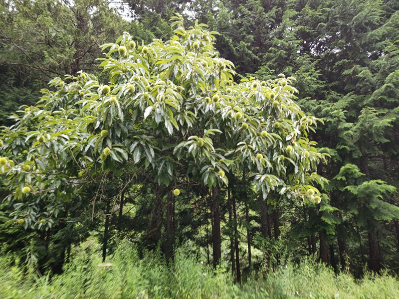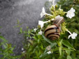 オシロイバナに大きなカタツムリ、栗(✾私に対して公平であれ・贅沢)がいっぱい実をつけてます。