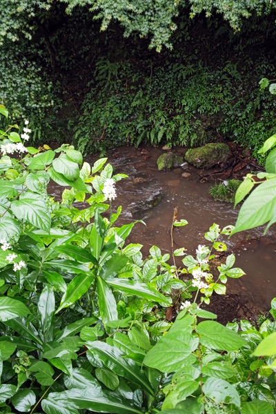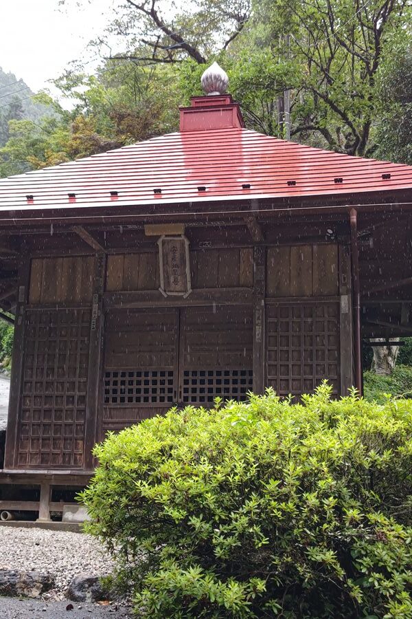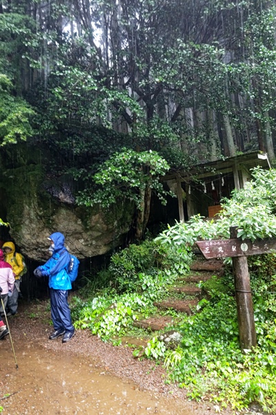 馬頭観音(地蔵分岐)、ここから登山道です。 雨が酷くなり川も濁流に。