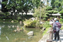東急大井町線 荏原町駅(10:30)→立会道路→伊藤博文公墓所外観(11:05)→品川区立 西大井広場公園→品川区立 しながわ中央公園(11:50~12:50)昼食・休憩→区立 戸越公園(13:00)→文庫の森(13:44)→戸越八幡神社(13:55~14:05)解散→戸越銀座 商店街→戸越駅&戸越銀座駅