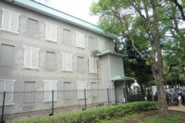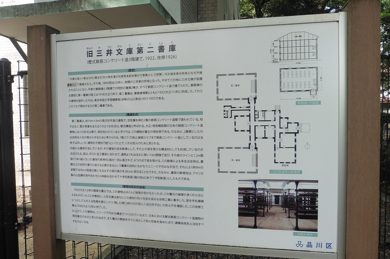 第二書庫は現存する日本最古の壁式鉄筋コンクリート造建物として貴重なもので、現在は中に入ることはできませんが、防災備蓄倉庫として活用されています。