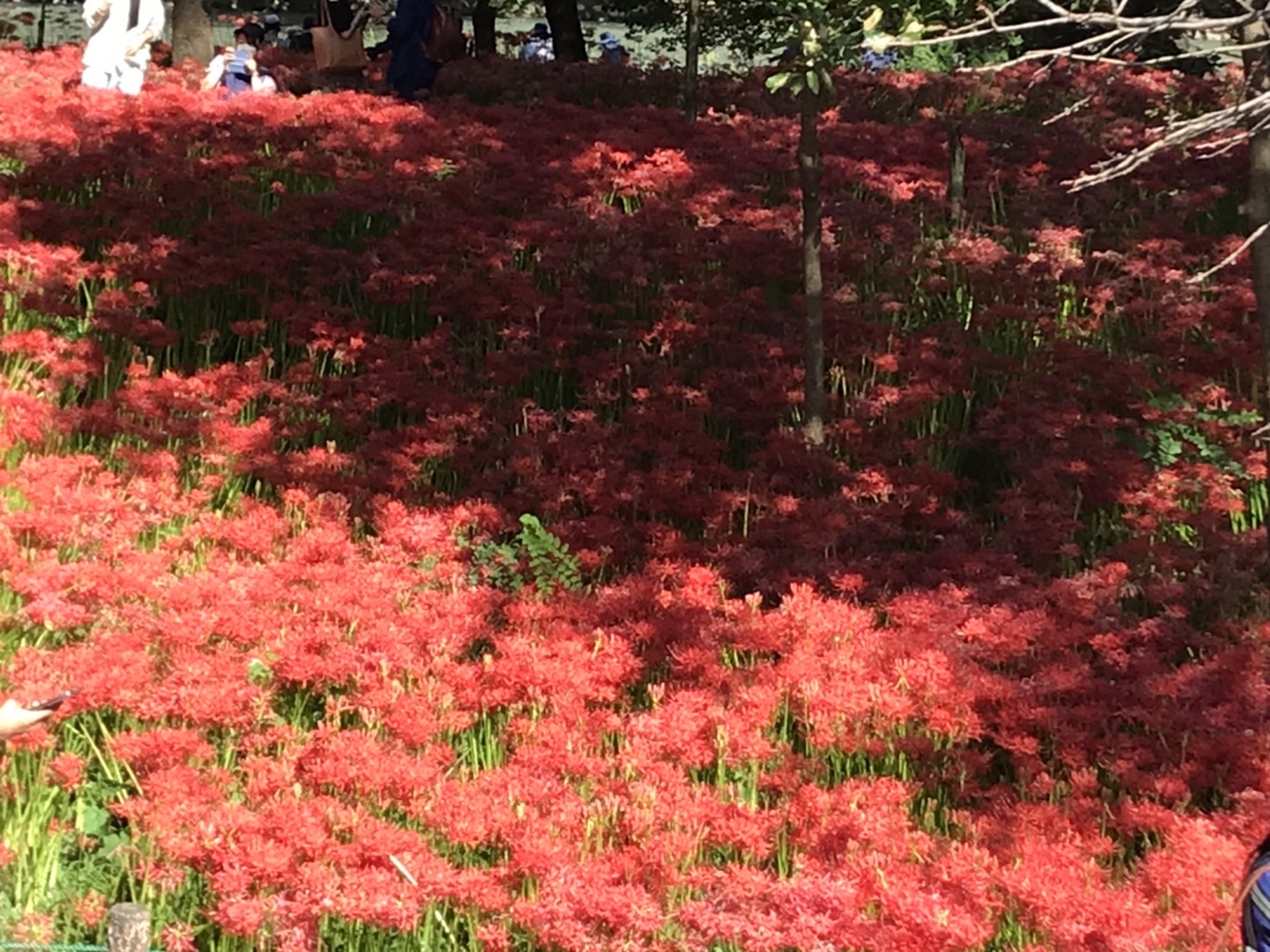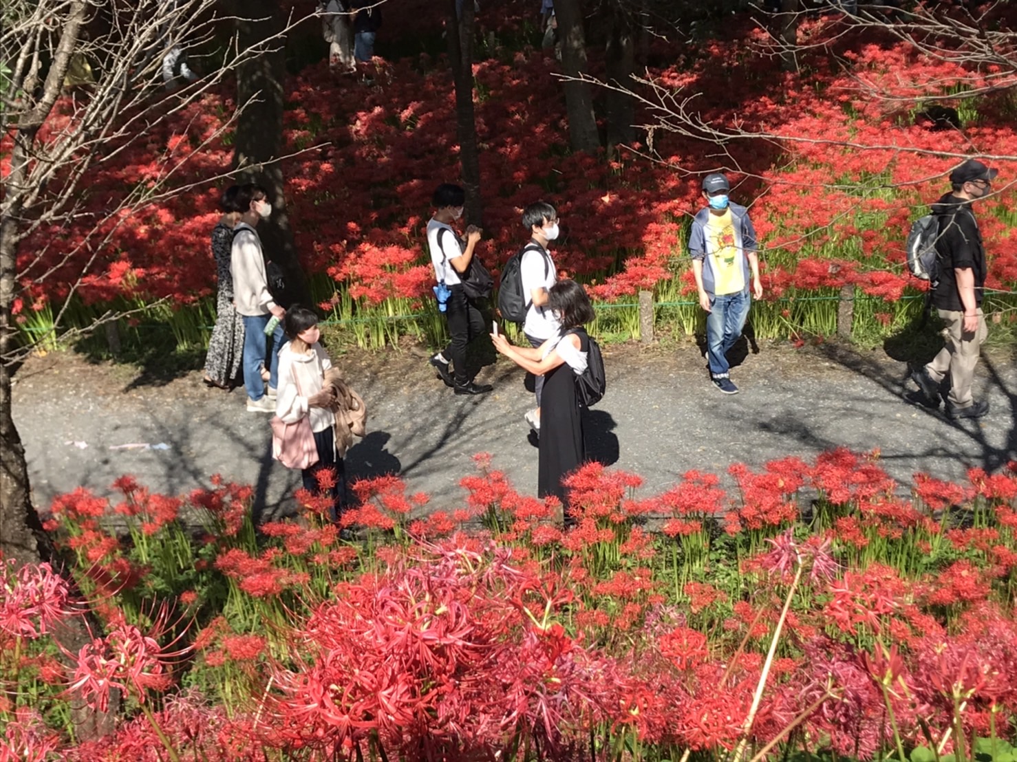 巾着田では、「曼殊沙華まつり」が開催されていて多くの観光客で賑わっていました。昨年はコロナ感染症の影響で中止、観光客が集まれないよう花は無残にも刈られたようです。今年は屋台も出ていて賑わいを取戻し、曼殊沙華も伸びのび咲いたことでしょう。