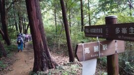 西武線高麗駅を南北に走る舗装路を南に約25分行くと「多峯主山登山口」