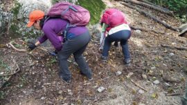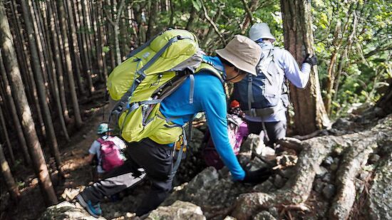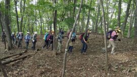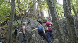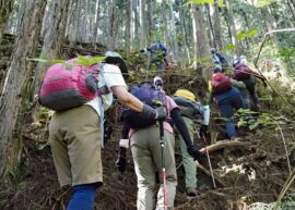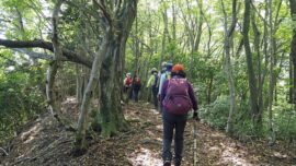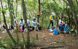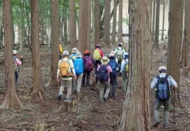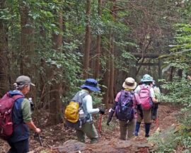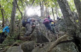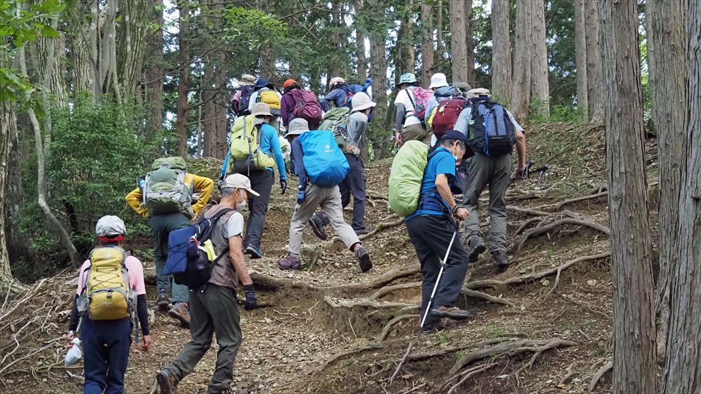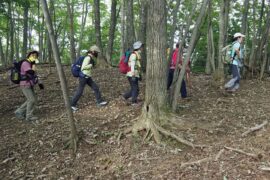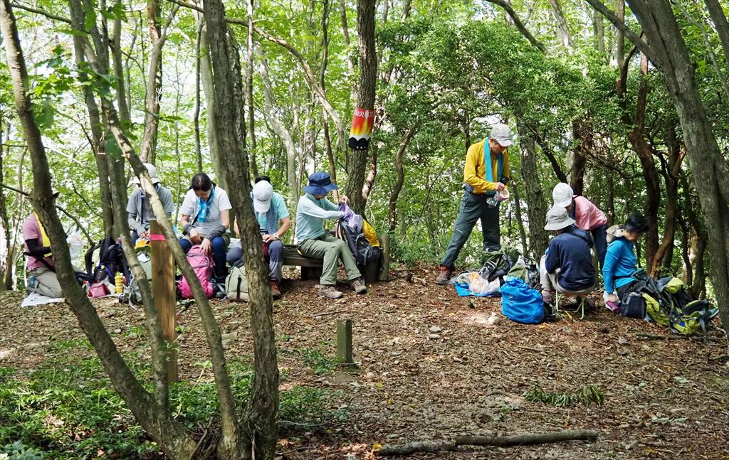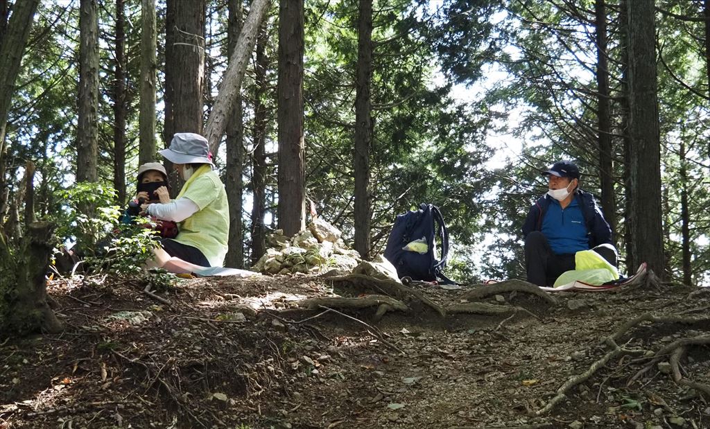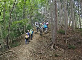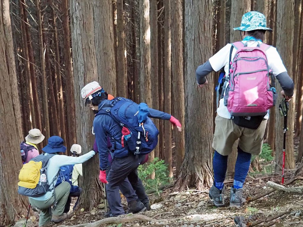 歩くごとに、足元に赤茶色の山栗があり、こんな山栗が多い山は初めてです。休憩の度に、四つん這いになり熱心に栗拾い。また、岩登りも何箇所あり、変化の多いコースでした。 大倉昌子