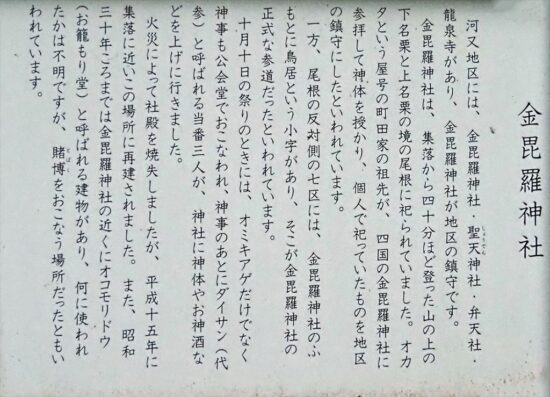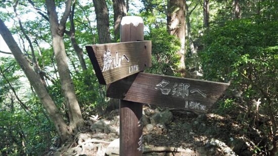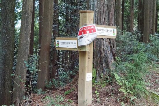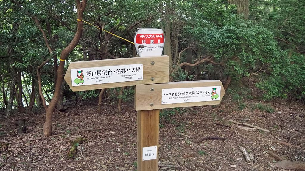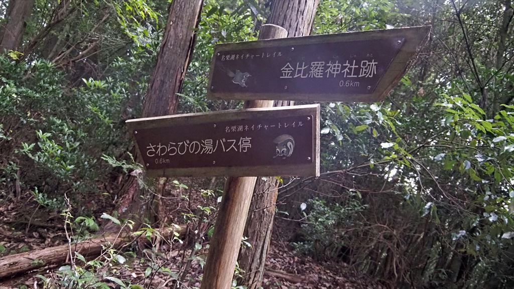 金比羅山。 さわらびの湯バス停1.4km 蕨山展望台4.9km 名郷バス停8.5km