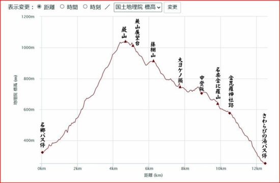 ◇最高点の標高: 1044m 最低点の標高: 253m