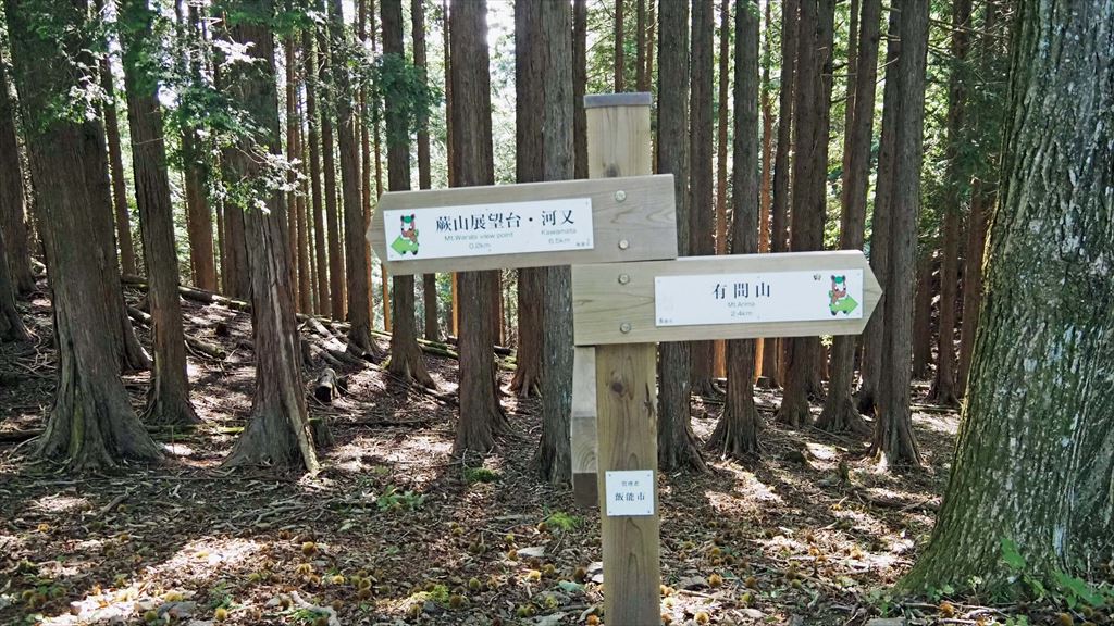 もうすぐ蕨山 蕨山展望台0.2km 河又6.5km 名郷バス停3.4km