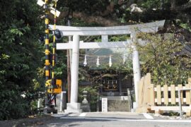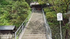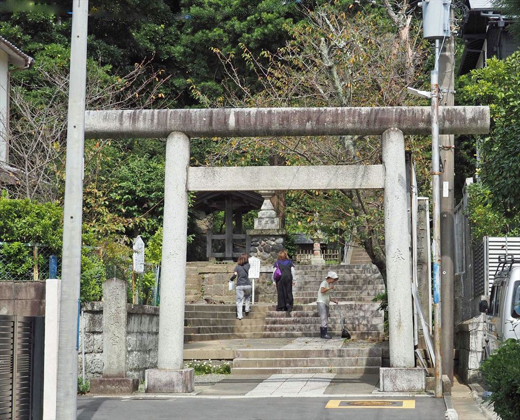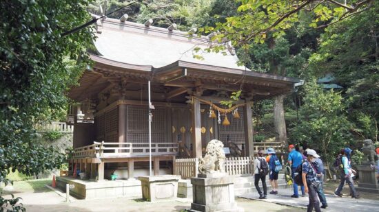 和銅年間(8世紀初め)に、この辺りの豪族、染谷太郎時忠が創建した鎌倉で最古といわれる神社。源頼義が相模守として祈願した後、八幡太郎義家が生まれたと伝えられる。鎌倉時代には、源頼朝、政子、実朝らが参拝しており、源氏と縁の深い神社。川端康成の「山の音」に登場する信吾の家の裏山の神社のモデルともいわれる。
