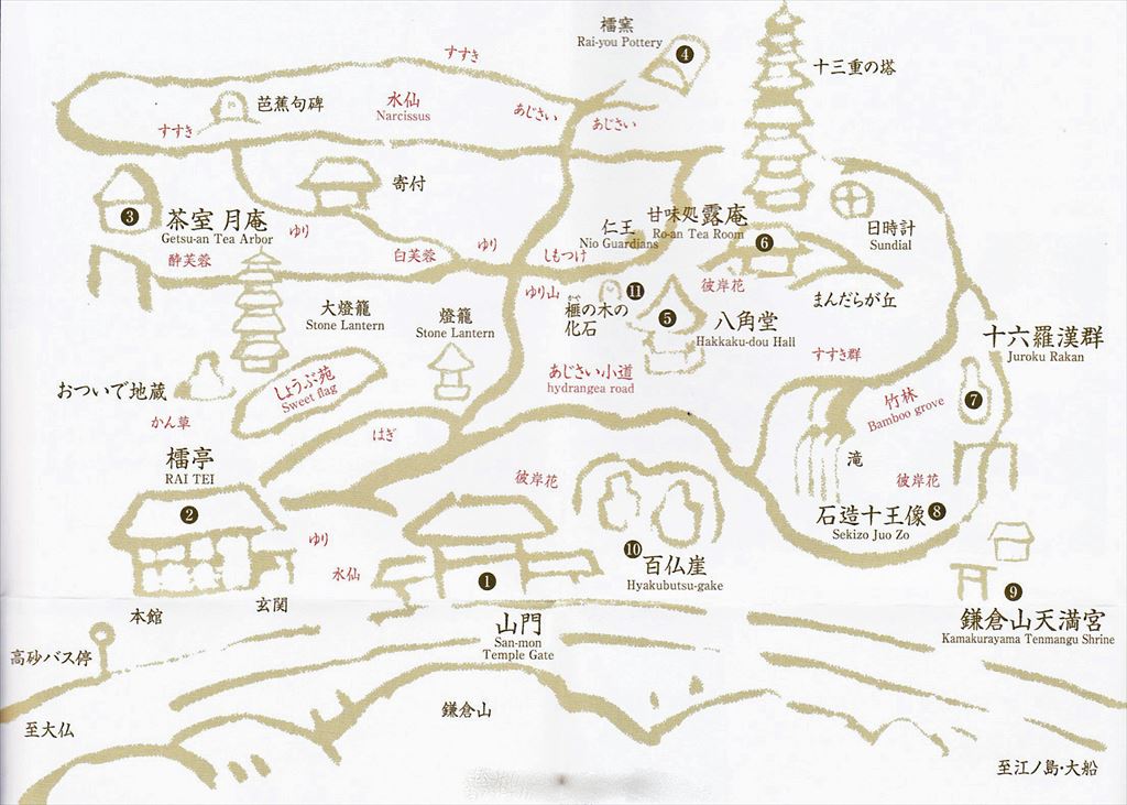 予定していた鎌倉文学館が休館日の為、長谷寺を見学に入れて、バスで鎌倉山の檑亭へ、遅い入店の為すんなりと皆が座れ美味しくお蕎麦を頂きました、庭内の景色も味わいあり竹林も見事でした。 大倉