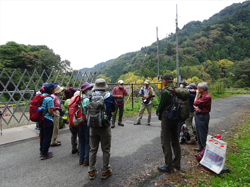 登山口手前で、リーダー挨拶とコース説明