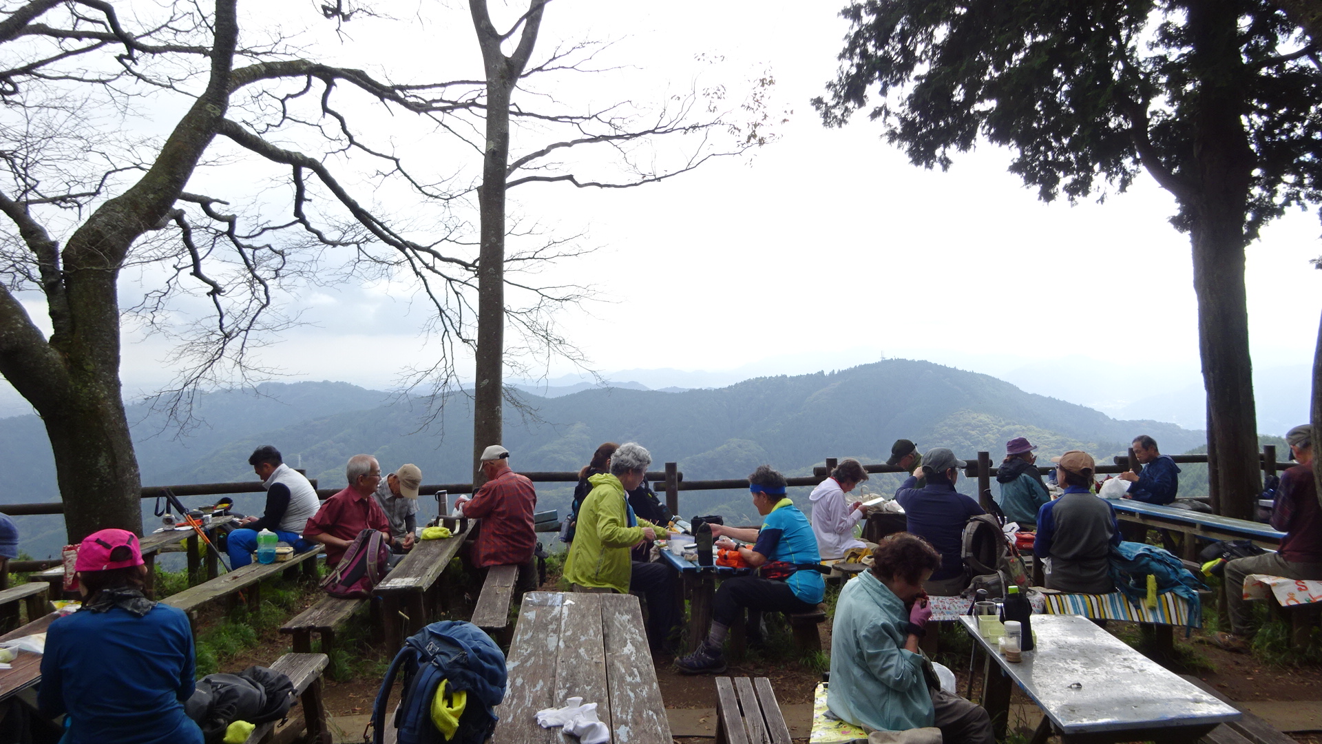 景信山の山頂、人でほぼ満席