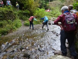滑りやすく慎重に下る。日影沢が水量あり飛び石の上を全員が渡渉して解散する。