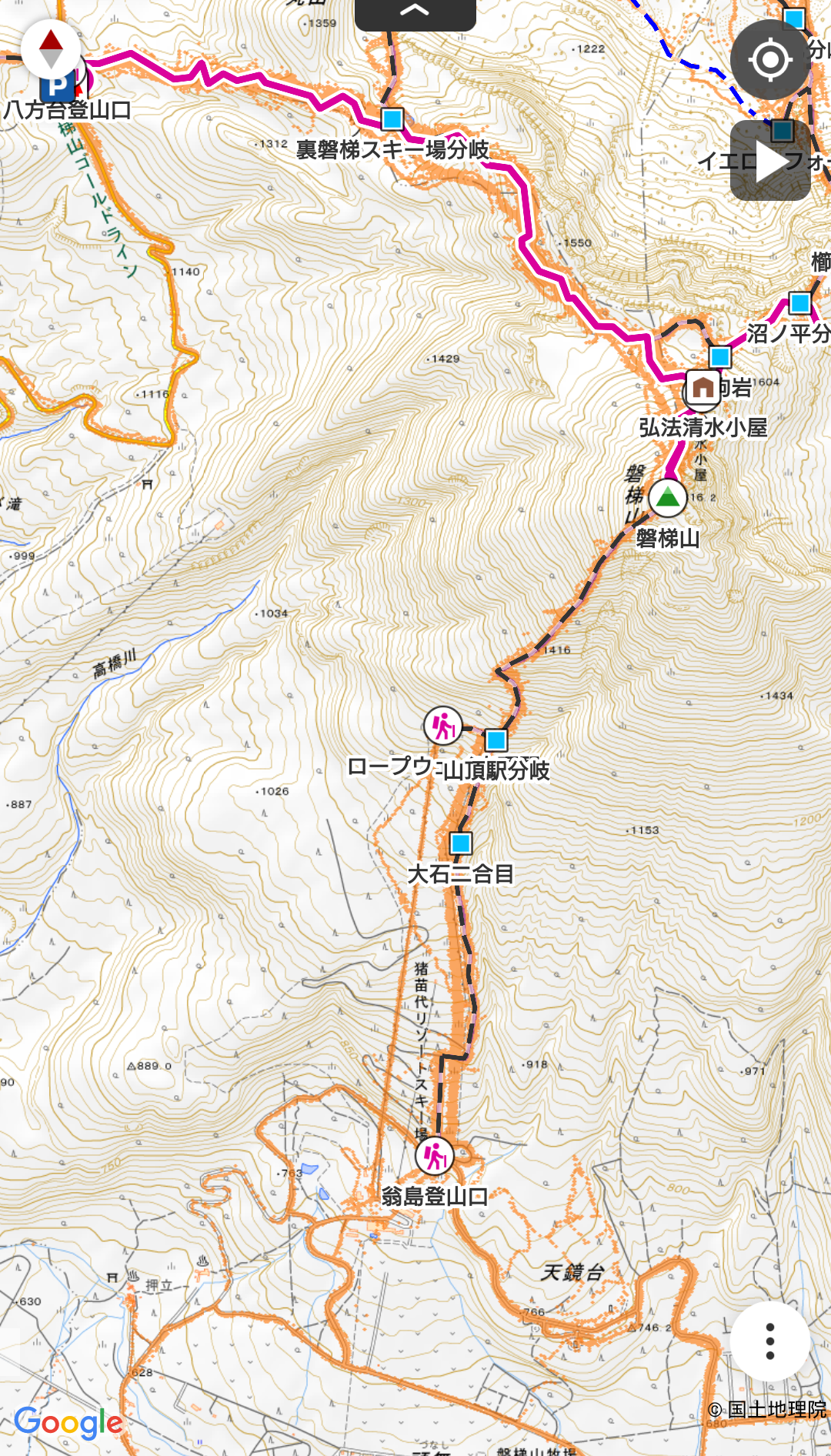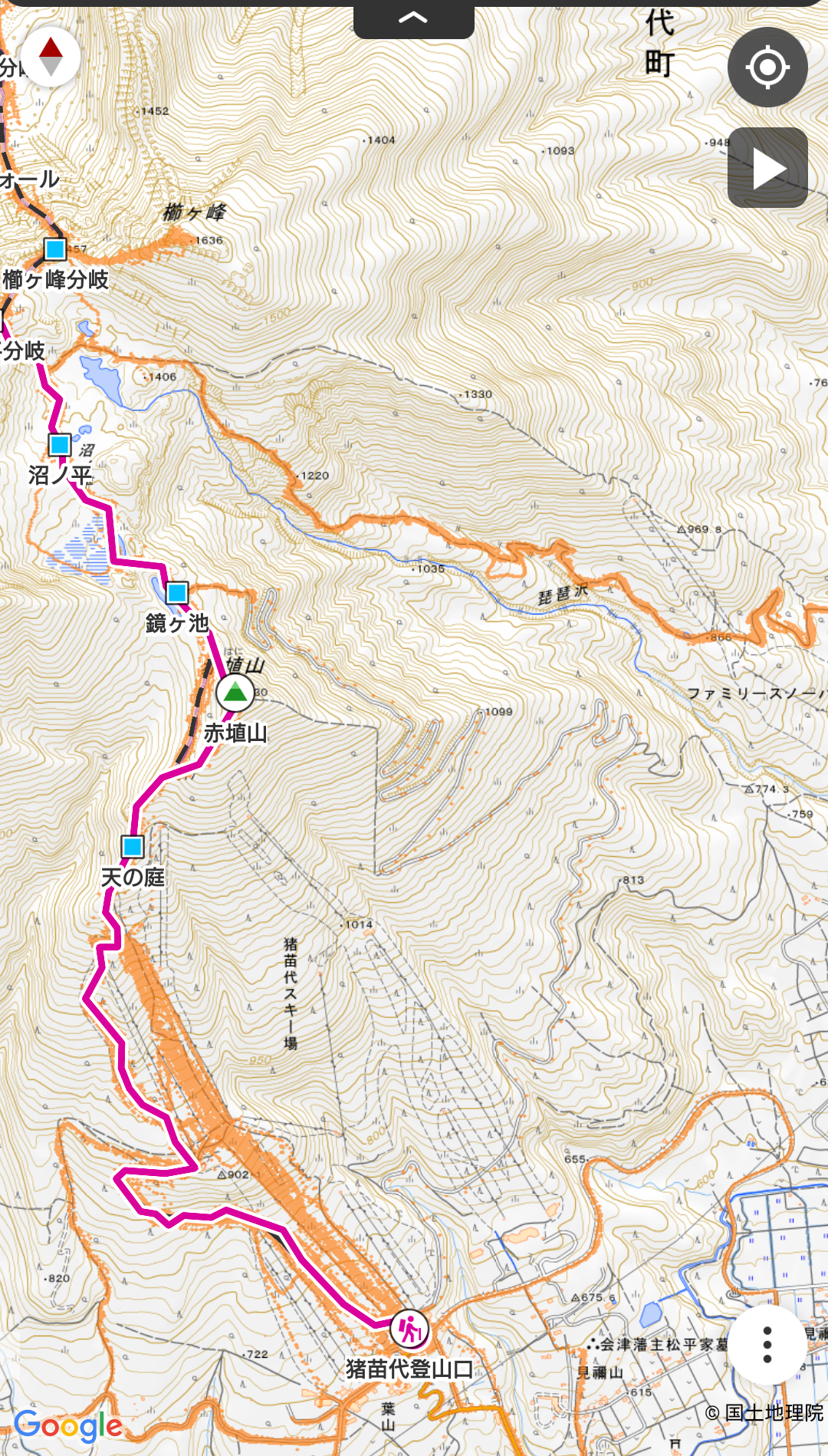 ー赤埴山分岐15:02-15:10赤埴山15:16-天ノ庭15:46ー16:40猪苗代スキー場