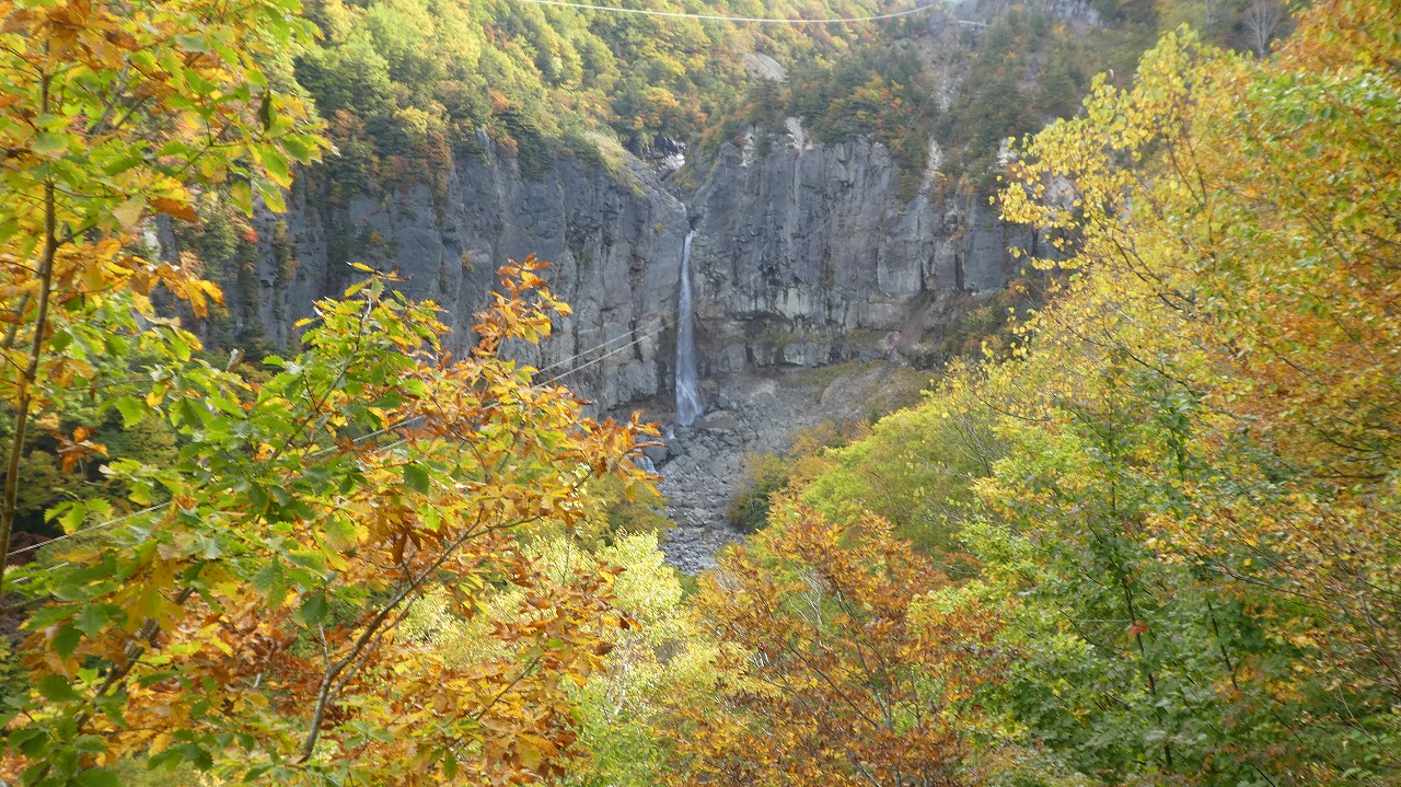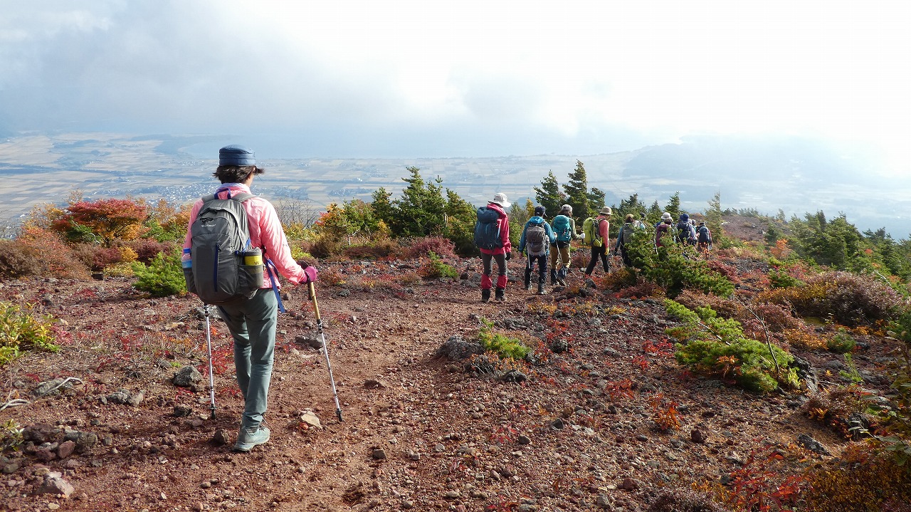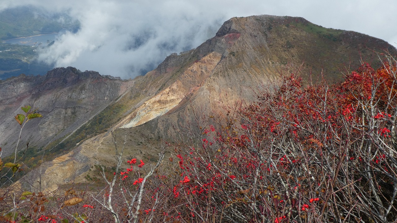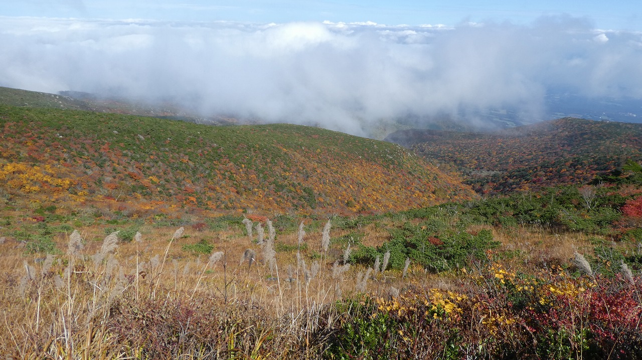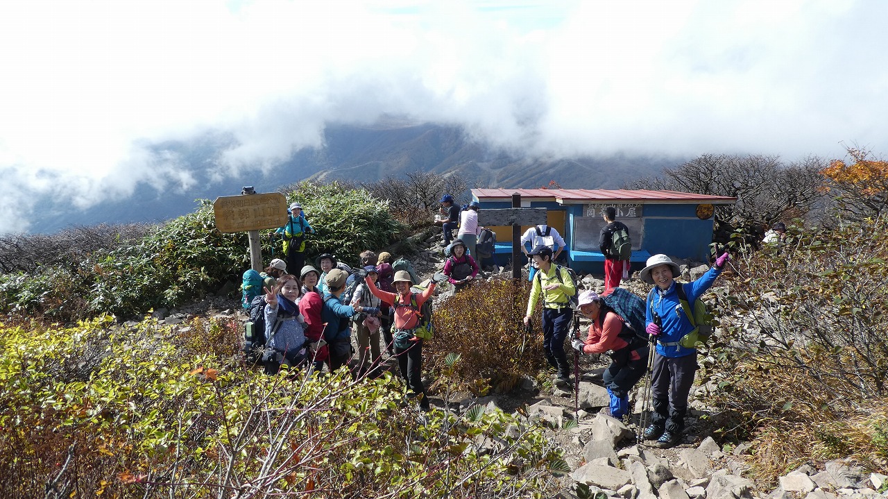 山川リーダー、参加会員の皆様お疲れさまでした。会津のシンボル「宝の山よ」と民謡に歌い継がれる磐梯山と、高村光太郎の「智恵子抄」でもその名が広く知られた安達太良山。二日間で、錦秋の絨毯が敷き詰められた二山を楽しく歩けました。ツアー代金では、「福島来て割」の申請をしていただき、おまけに¥1000クーポン券まで!安達太良山の下山では、急遽クーポン券でスキー場のゴンドラに乗り、空から紅葉が楽しめました。秘密の湯守り管理路を歩け、宿の無料送迎など、微に入り細に入り細かな手配をありがとうございました。 とても思いで深い山行でした。