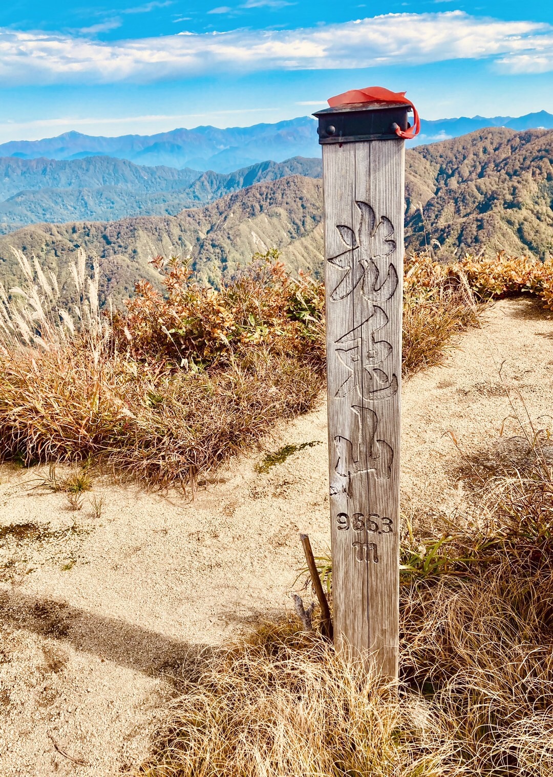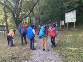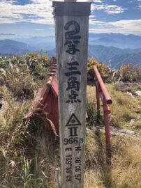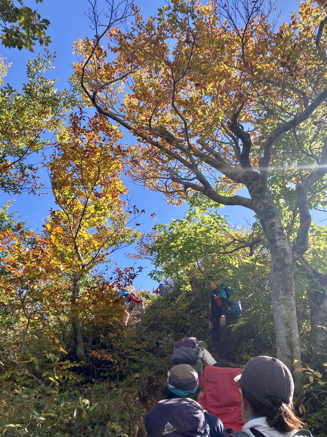 に満たない山ですが奥深く歩きでが有りました。山頂からは360度の大パノラマ、紅葉には少し早かったですが寒くもなく暑くもなく気持ちよく歩けました。何時もながら協力者、参加の皆様に感謝します。お疲れ様でした。 佐野満喜子