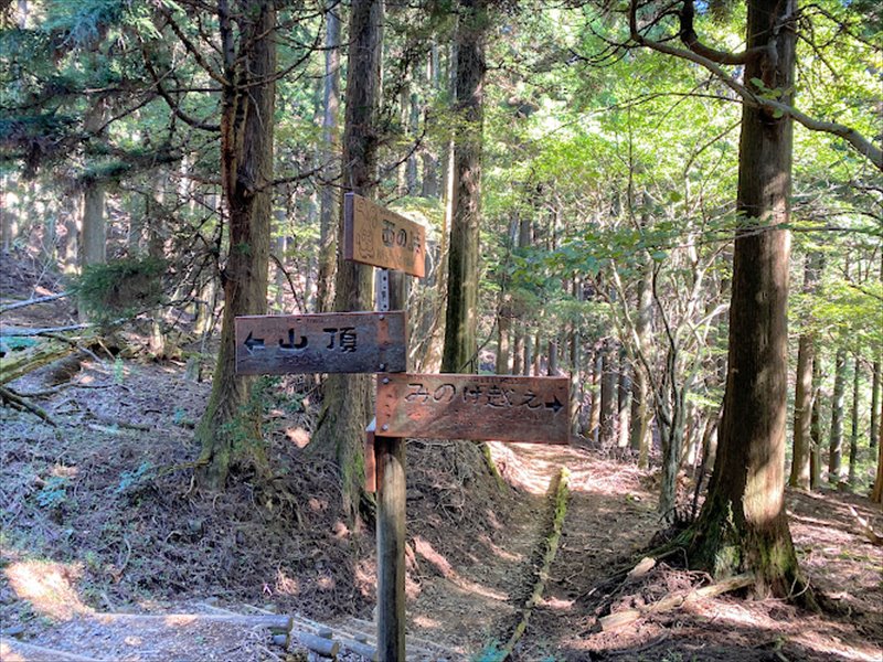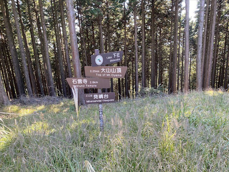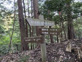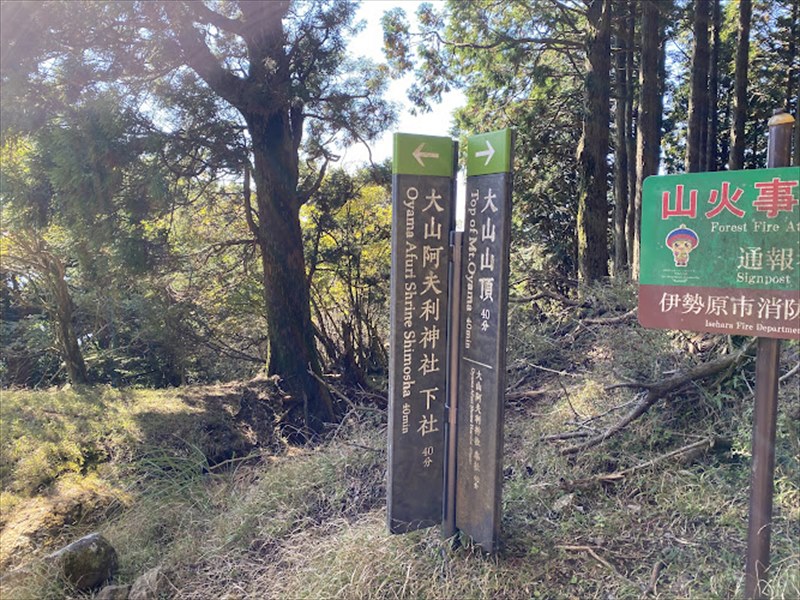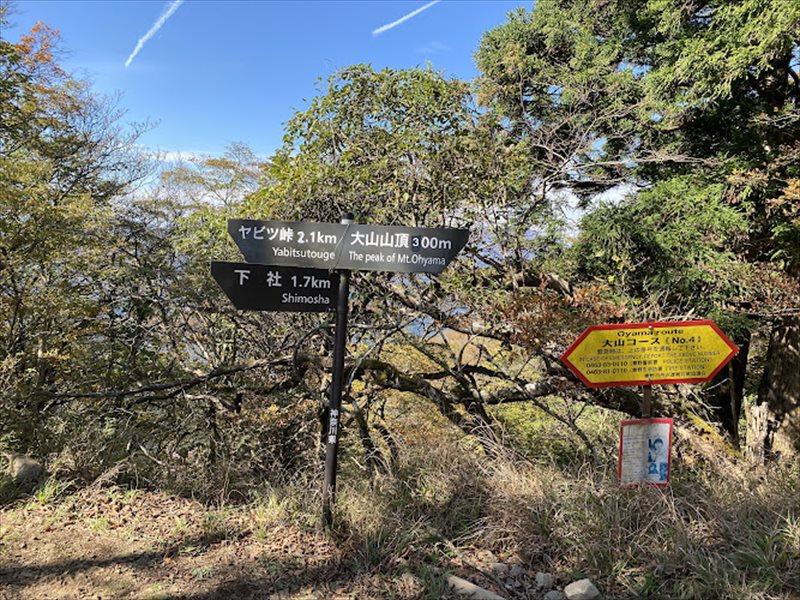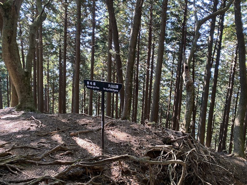 蓑毛越へ行く道と大山山頂へ行く道の分岐点。