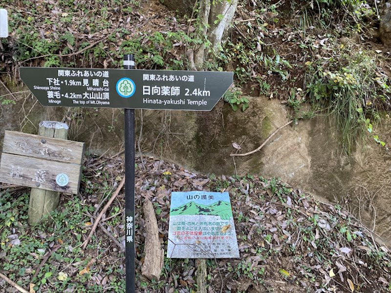 ▼コース :蓑毛バス停9:00→裏参道→二十丁目11:05→大山11:40(~昼食12:15)→見晴台13:20→日向薬師16:10→日向薬師バス停16:30(解散)