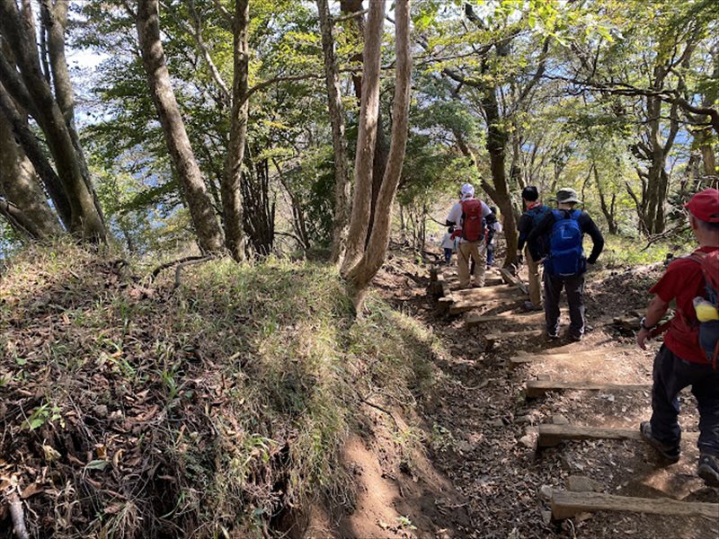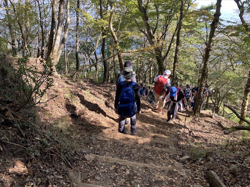 加藤リーダー、スタッフ、参加会員の皆様、お疲れさまでした。大山詣で!超有名なお題です。今回は蓑毛から裏街道で上がり、見晴台経由で下山ですが、その先のコースは未体験でした。今回の本題は、九十九曲り登山口から日向薬師に向かう稜線に上がる登山道、なんと妖しいこと! 浄発願寺本堂跡に続く53段の石段は、江戸時代に53人の罪人が1段ずつ築いたと案内板がありました。薄暗い参道の両側には朽ち果てた首無し地蔵が並び、苔むした法輪塔が点在します。一人では踏み込めない歴史を感じる道を上ることができました。ありがとうございました。