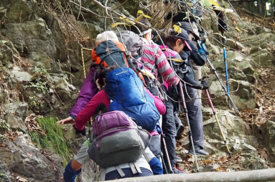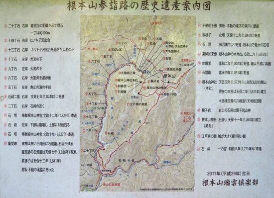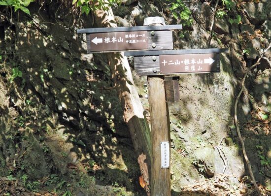 根本山は近世では根本神社のご利益を授かろうとする参詣の人々で賑わったとされ、江戸期には参詣用のガイドブックも出版されたほどで、根本山神社までの街道に石灯ろう、丁石(天満宮から根本山神社の距離を示す標石)が今も残されており、かっての隆盛をしのばせています。中尾根コースは、尾根を登るコースで、森林浴を楽しみながら根本山に向かう道としておすすめコースになっています。周辺には「森林浴の森百選」「水源の森百選」に選ばれた桐生川原生林と清流があり、素晴らしい景観と歴史の息吹にふれながら、この上ない森林浴を満喫することができます。根本沢ルートを通るコースは急峻で、特に冬場は鉄ハシゴや鎖場が凍結するなど危険です。自己責任においてしっかりと準備を整えて、楽しんでください。