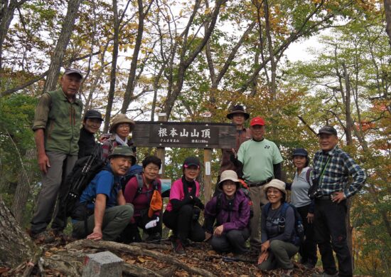 根本山は、ツツジなど花の山でも賑わう山です。今回は紅葉の時期に計画しました‼️鮮やかな紅葉もところどころ見られ参加者皆様に喜ん頂きました。今回の参加者、健脚揃いで、良い天候にも恵まれなにかと情報交換も出来て、楽しく歩く事が出来ました。参加者の皆様のご協力感謝します。柴崎実