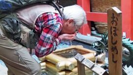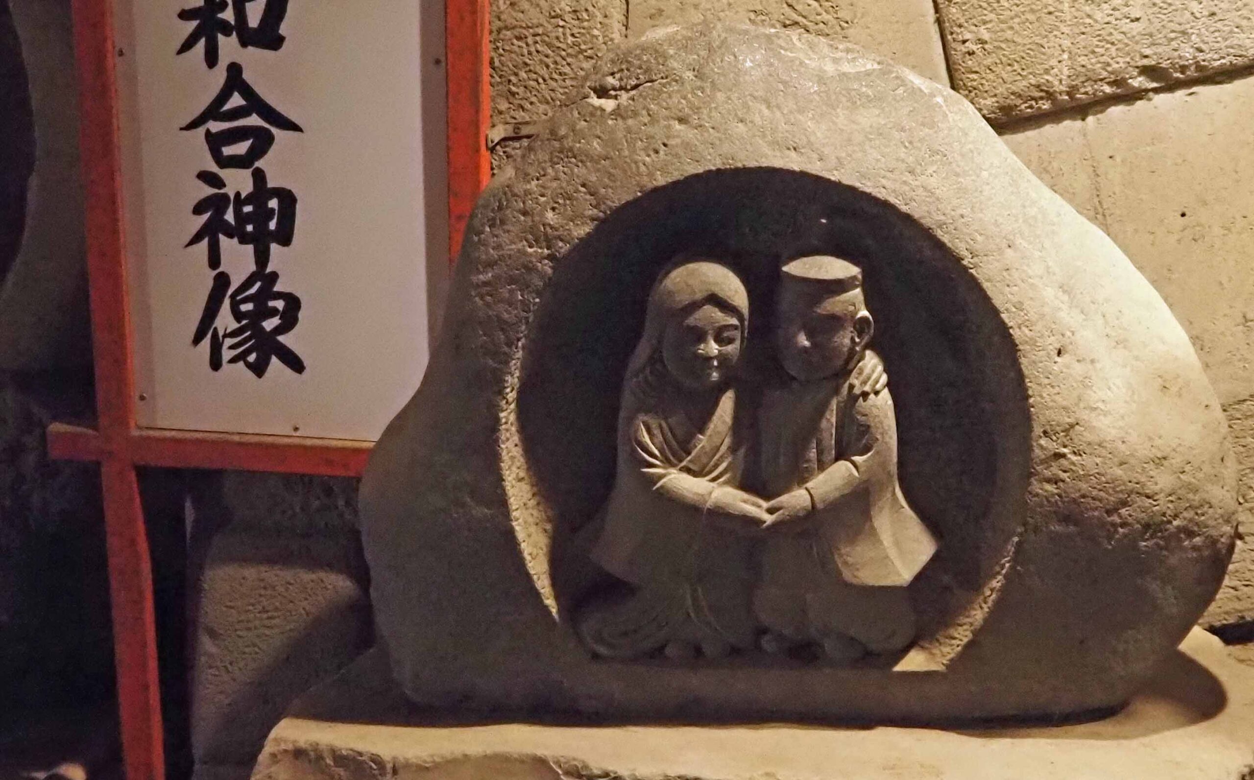 大山阿夫利神社下社の拝殿右側に地下巡拝道入口があります。こちらから入ると大山名水と和合神像等があります。